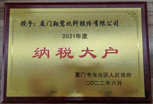 喜報 ┃ 翔鷺騰龍公司榮獲海滄區(qū) 2021年度“納稅大戶”、“納稅先進(jìn)企業(yè)”榮譽稱號近日海滄區(qū)政府授予廈門翔鷺化纖股份有限公司2021年度“納稅大戶”、騰龍?zhí)胤N樹脂(廈門)有限公司“納稅先進(jìn)企業(yè)”榮譽稱號。2021年是翔鷺騰龍公司面對內(nèi)、外復(fù)雜形勢、風(fēng)險和挑戰(zhàn)的一年,在競爭中求生存的同時,仍堅持誠信經(jīng)營、依法納稅,積極承擔(dān)起社會責(zé)任。 再獲得此榮譽稱號,不僅凸顯了翔鷺騰龍公司為海滄區(qū)經(jīng)濟(jì)發(fā)展、社會建設(shè)過程中所發(fā)揮的重要貢獻(xiàn),也是對公司未來發(fā)展的鼓勵和支持。我們將化榮譽為動力,再接再厲,不斷創(chuàng)新突破,力求為海滄區(qū)經(jīng)濟(jì)發(fā)展做出新的更大貢獻(xiàn)。
