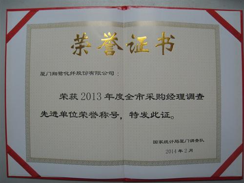 祝賀翔鷺化纖被授予“2013年度采購(gòu)經(jīng)理調(diào)查先進(jìn)單位”的榮譽(yù)稱號(hào)