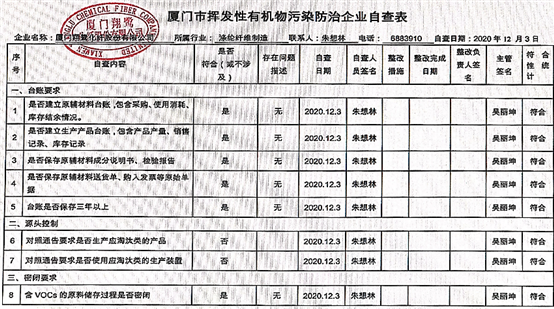 翔鷺化纖 廈門市揮發(fā)性有機物污染防治企業(yè)自查表 (2020年 第四季度).docx