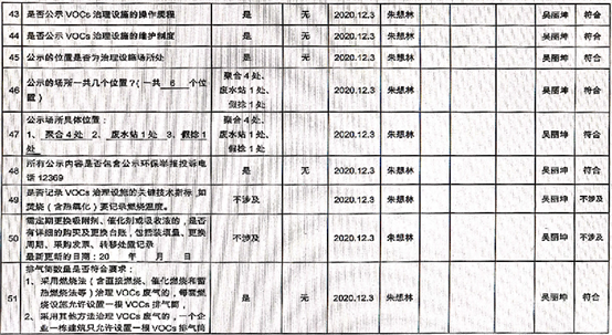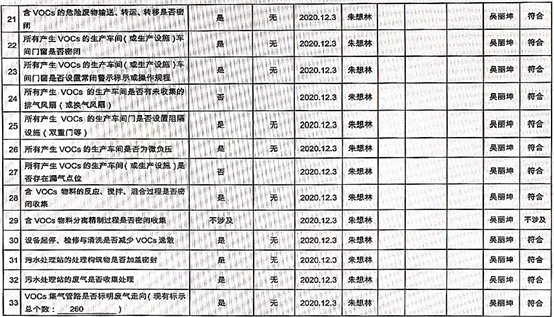 廈門市揮發(fā)性有機物污染防治企業(yè)自查表 (2020年 第四季度)