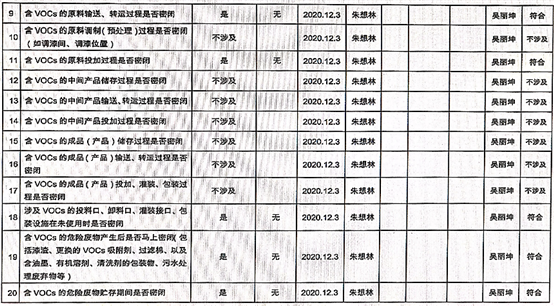 廈門市揮發(fā)性有機物污染防治企業(yè)自查表 (2020年 第三季度)