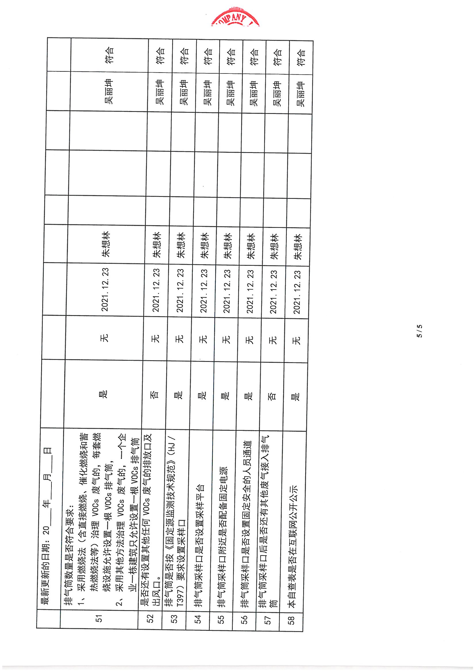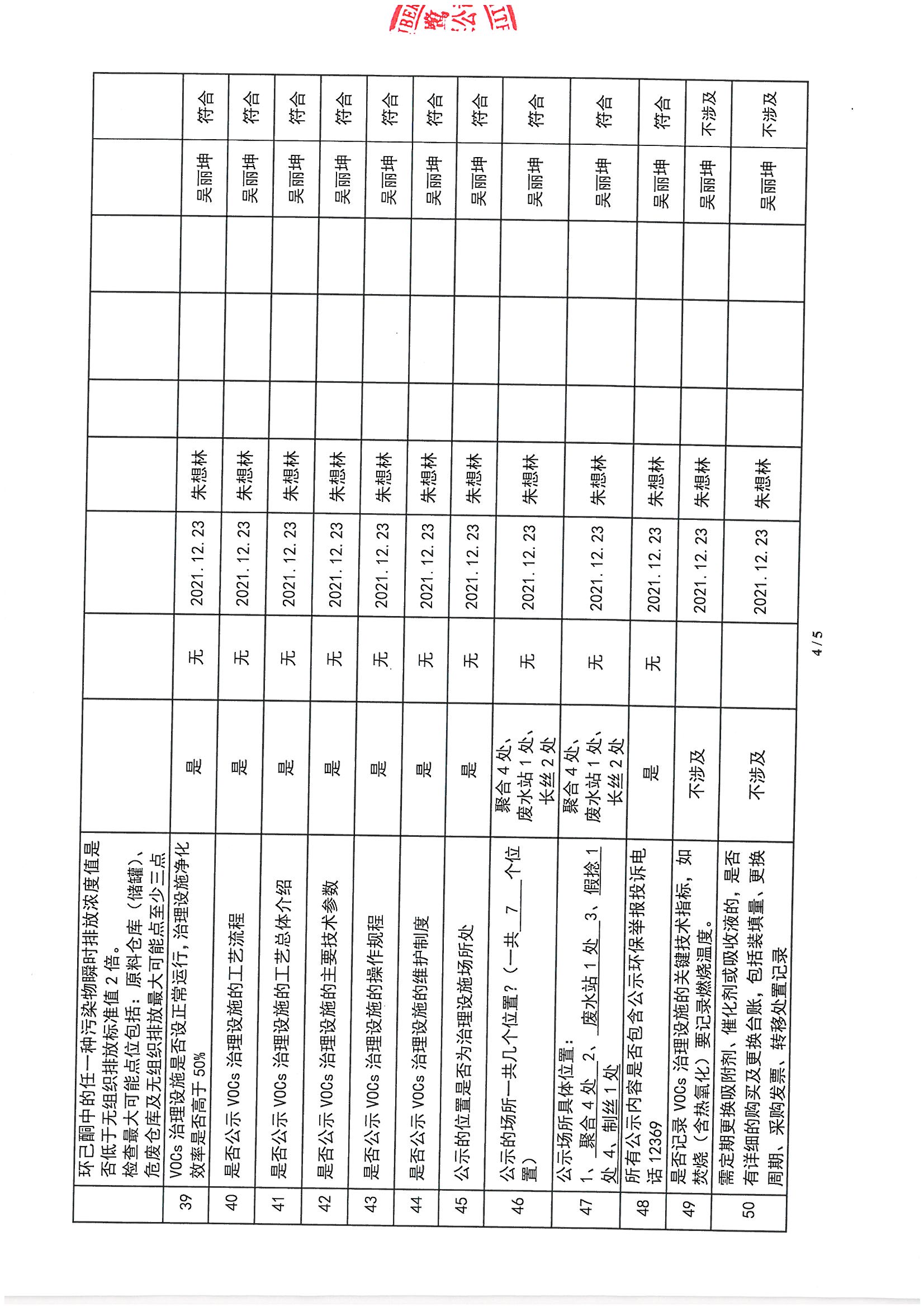廈門市揮發(fā)性有機物污染防治企業(yè)自查表 (2021年 第四季度)