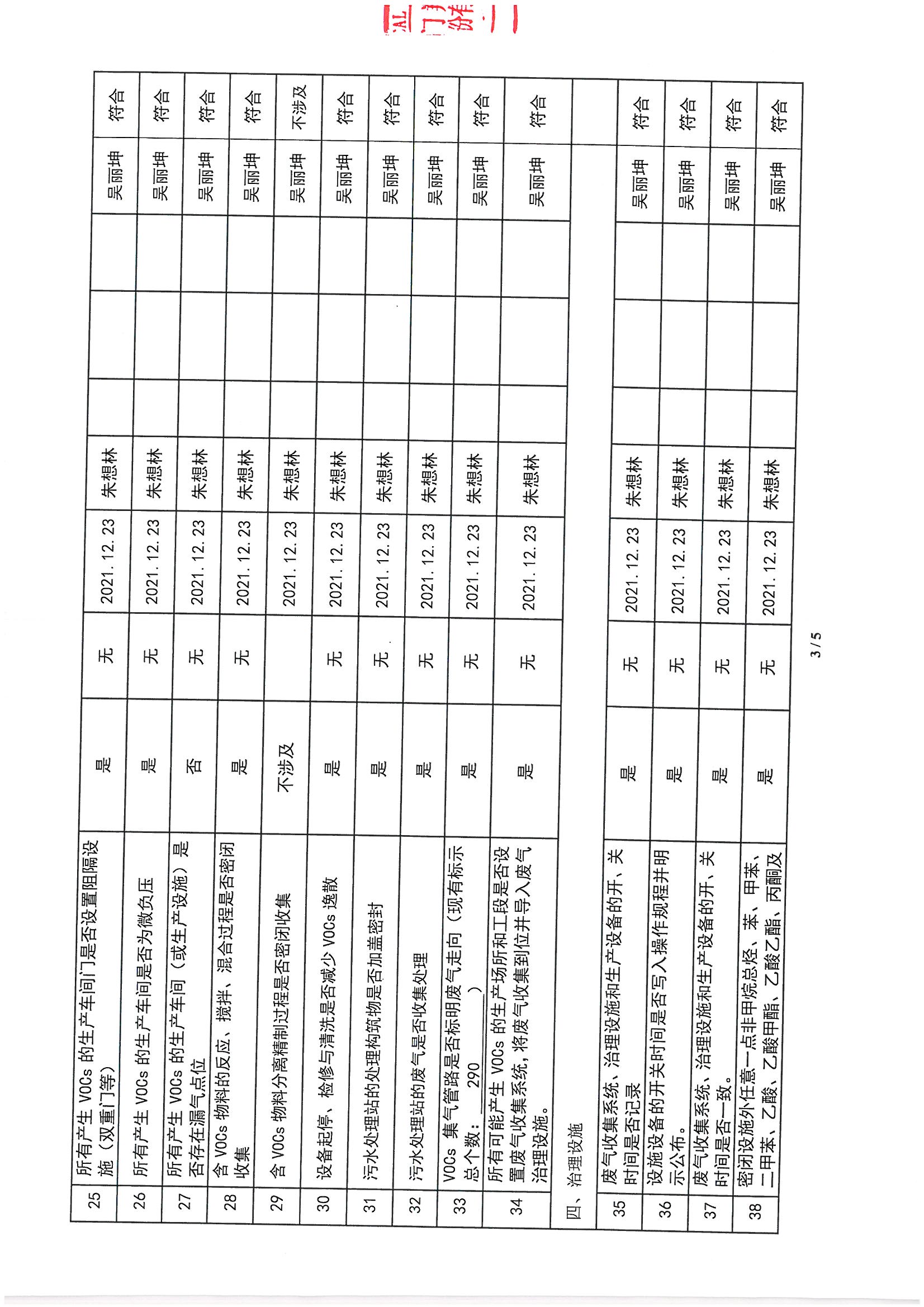 廈門市揮發(fā)性有機物污染防治企業(yè)自查表(2021年 第三季度)