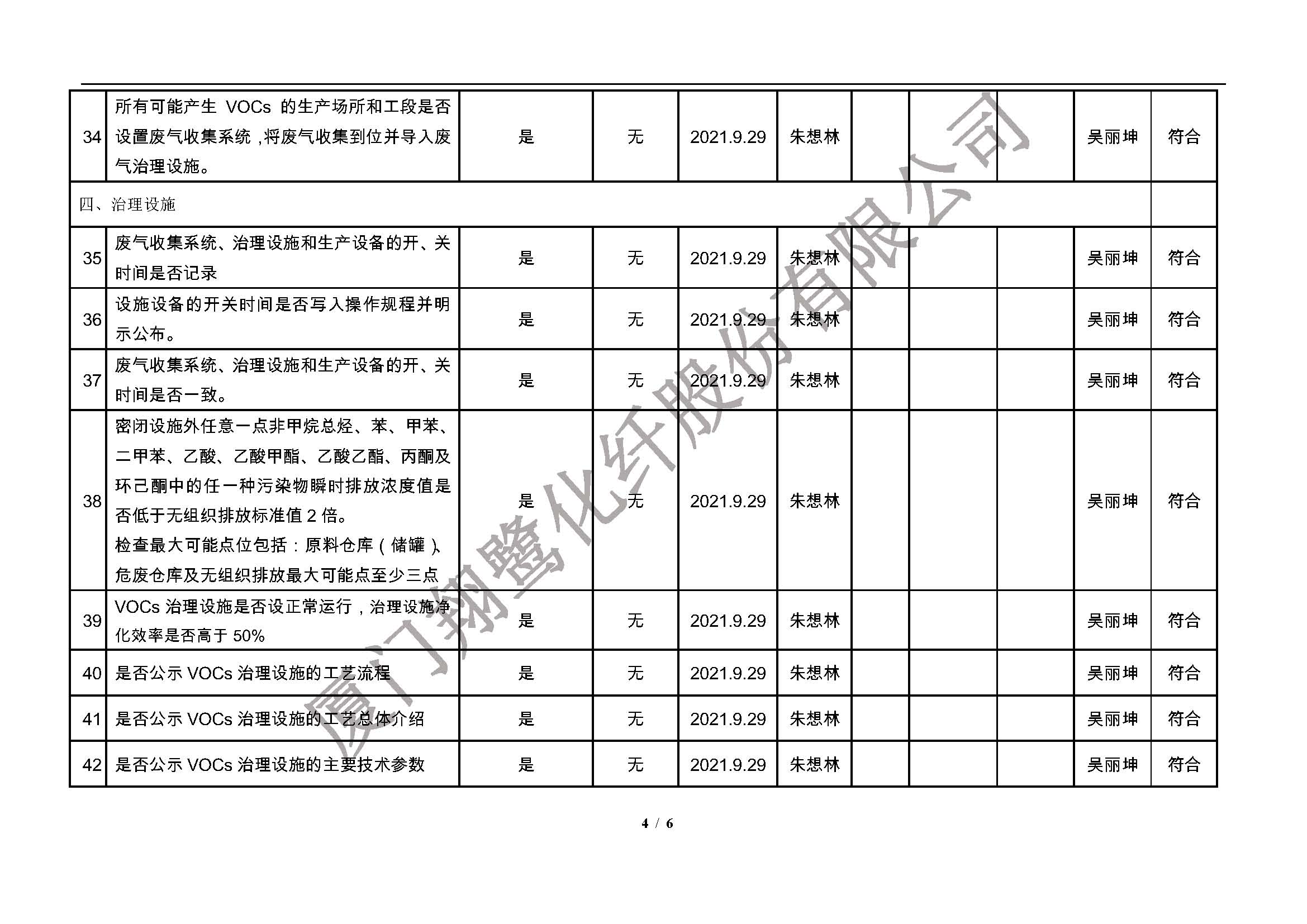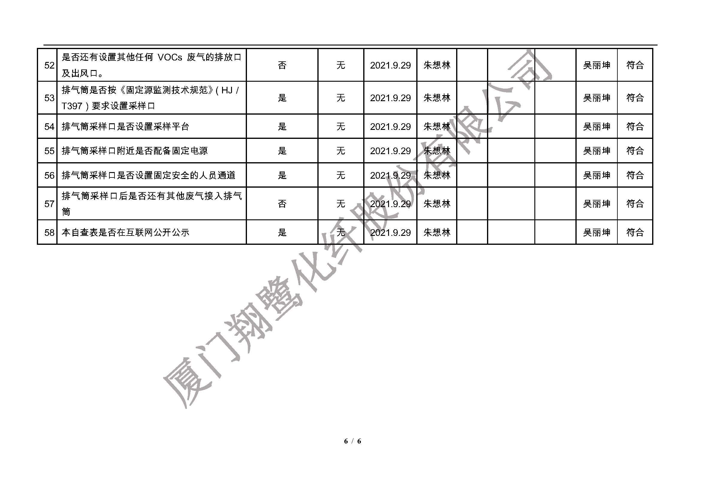 廈門市揮發(fā)性有機物污染防治企業(yè)自查表(2021年 第二季度)