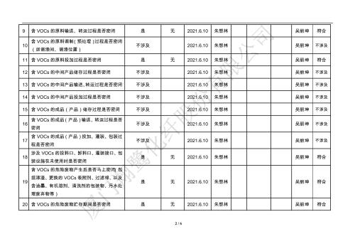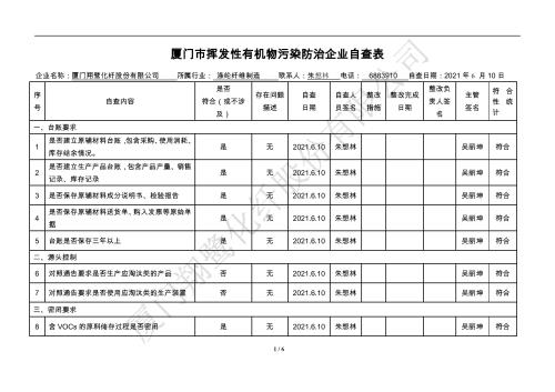 廈門市揮發(fā)性有機(jī)物污染防治企業(yè)自查表(2021年 第二季度)